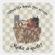 Autocollant primitif de style campagnard - le panier tissé est rempli de choses primitives de campagne comme une maison miniature, panneau de courtepointe, coeur, clôture et une courtepointe patchwork accrochée sur le côté. L'arrière - plan est un chèque en vichy et il dit "Quand la vie vous donne des restes Faites une courtepointe !" Ces autocollants seraient amusants à donner à votre prochain club de courtepointe ou à toute personne que vous connaissez qui aime la courtepointe.