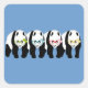 Une rangée de quatre ours de panda mignons, mais sérieux, qui vous regardent à travers leurs lunettes. Les pandas sont noirs et blancs, et leurs lunettes sont vertes, rouges et jaunes / argile. Les lunettes ont chacune un arc sur elles.