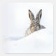Sticker Carré Rabbit Peeking Over a Snowdrift