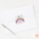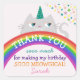 Jolie fille colorée Anniversaire merci autocollant avec arc-en-ciel, étoiles et kawaii chat unicorne - Caticorn.