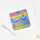 Ce design d'autocollant vibrant, accrocheur et passionnant sur le thème de l'anniversaire présente un ciel bleu avec des nuages motif arrière - plan, un grand nombre "20" et "HAPPY BANTHDAY", tous deux dotés d'un motif dégradé multicolore inspiré du spectre arc-en-ciel, et un nom personnalisable. Des autocollants amusants et colorés comme celui-ci pourraient être utilisés pour envelopper les cadeaux donnés pour célébrer le vingtième anniversaire de quelqu’un. [~Z0000374]
