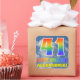 Ce sticker dynamique, attrayant et amusant sur le thème de l'anniversaire présente un arrière - plan motif ciel bleu nuageux, un grand nombre de "41" et "HAPPY BANTHDAY", tous deux dotés d'un motif dégradé multicolore inspiré du spectre arc-en-ciel, et d'un nom personnalisable. Des autocollants joyeux et colorés comme celui-ci pourraient être un cadeau amusant pour quelqu'un qui célèbre son 41e anniversaire. [~Z0000374]