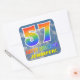 Ce design passionnant, amusant et accrocheur d'anniversaire à thème d'anniversaire comprend un arrière - plan motif ciel bleu nuageux, un grand nombre "57" et "HAPPY BANTHDAY", tous deux ayant un motif dégradé multicolore inspiré du spectre arc-en-ciel, et un nom modifiable. Des autocollants amusants et colorés comme celui-ci pourraient être offerts en cadeau à quelqu'un qui célèbre son 57e anniversaire. [~Z0000374]