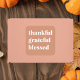 Ajoutez une touche sincère à vos cadeaux, enveloppes et décorations de fêtes avec cet autocollant carré Thankful Grateful Blessed (Merci, Reconnaissant, Béni). Avec son fond neutre chaud et sa typographie blanche en gras, cet autocollant polyvalent est idéal pour sceller les cartes de Thanksgiving, décorer les faveurs de fête ou étiqueter les friandises d'automne. Imprimé sur du papier adhésif de qualité, il est disponible en plusieurs tailles et finitions pour un usage personnel et événementiel. Un moyen simple et élégant de répandre la gratitude et la joie saisonnière.