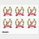 On these Holiday envelope sealer stickers, a watercolor portrait of an adorable brown and white Chihuahua dog is surrounded by a red berry holly wreath. At the bottom is a red banner with your custom Christmas greeting, and your signature is in green beneath it.