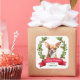 Sticker Carré Red Banner Holly Brown Chihuahua Dog Christmas