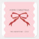 Ce design comprend des autocollants de Noël modernes avec un arrière - plan rose doux et un arc rouge profond dessiné à la main. Personnalisez avec le nom de votre famille.