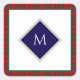 Sticker Carré Red Christmas Wool Texture Plaid with Monogram