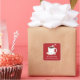 Un autocollant pour donner un mélange de chocolat chaud qui comprend votre nom de famille et un dessin animé amusant sur un arrière - plan rouge. Ajoutez-le au conteneur comme un étiquette festif et amusant. Red Nom de famille Hot Chocolat Mix Sticker Carré de Noël Sweetsham Food Art | ©Melissa Patton - Artiste/Illustrateur