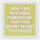 Un drôle de design typographique sur les regrets, cela confond le passé et le présent tendu et n'a pas de sens. Jusqu'à tout ce que vous pourriez regretter demain, hier.