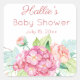 Sticker Carré Remerciement Baby Shower hydrangea rose et pivoine