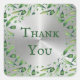 Sticker Carré Remerciement floral aquarelle vert élégant argenté