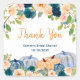 Cet autocollant de remerciement à l'aquarelle mignon et fantaisiste présente des arrangements floraux et des citrouilles de couleur pêche, bleu bébé et bleu marine. Le texte combine une écriture manuscrite et des polices sans serif pour un look stylé et moderne. C'est parfait pour un baby shower d'automne.