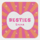 Sticker Carré Retro Besties Pink & Orange Sunburst Personalized