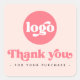 Carré business merci autocollants avec le texte "Merci" dans une police de style rétro et le texte personnalisable "pour votre achat". Texte rose (ou couleur personnalisée) sur un arrière - plan rose pâle. Téléchargez votre logo. Vous pouvez modifier les couleurs, déplacer et redimensionner les éléments à l'aide de l'outil de conception.