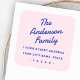 Étiquettes d'adresse de retour avec votre nom dans une police de style rétro avec votre adresse de retour ci-dessous. Texte bleu sur arrière - plan rose clair. Toutes les couleurs sont personnalisables.