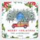 Sticker Carré Rétro Classique Rustique Joyeux Noël Camion Rouge