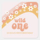 Les autocollants Wild One de premier anniversaire avec marguerites de style 70's et les polices et couleurs boho.