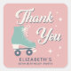 Belle autocollante rose rousse pour sa fête d'anniversaire de patinage à rouleaux avec "Merci" dans un scénario des années 70 et une illustration d'inspiration rétro d'un patin à roulettes bleu turquoise. Personnalisez avec son nom dans une simple typographie bleu turquoise foncé.
