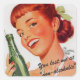 Tête rouge rétro tenant une bouteille de soda avec un drôle de slogan.