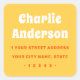 Yellow return address labels with retro typography. Fonts and colors can be customized with the design tool.