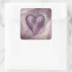 Un autocollant carré qui correspond à notre invitation "Révéler le Coeur" avec l'image d'un coeur violet embrassant deux lys calla blancs derrière des voiles de lavande. Voir invitation correspondante, enveloppe, étiquette de faveur et étiquette. Voir l'ensemble de la collection Sticker des Lumières dans les INVITATIONS | Section Stickers & Étiquettes.