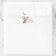 Joli Rinder de dessin animé avec des ornements colorés et des lumières de Noël accrochées à ses bois. Cet autocollant d'étiquette cadeau a un endroit "À" et "De" pour écrire dans les noms ainsi que "Joyeux Noël" écrit en lettres sucres de canne.