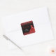Une belle robe d'aquarelle rouge vif sur un arrière - plan noir avec fausse parties scintillant en haut et en bas de l'autocollant carré. Tout le texte peut être personnalisé selon vos besoins.
