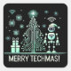Sticker Carré Robot IA avec arbre de Noël Tech - Joyeux Techmas