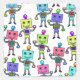 avec une illustration numérique d'une multitude de robots multicolores à l'ancienne. Chacune dispose d'une ampoule sur la tête et de nombreux boutons intégrés dans la poitrine.