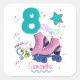 Sticker Carré Roller Skate Anniversaire Fille Retro Patinage
