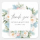 STICKER CARRÉ ROSE BLEUE DOUX FLEURS MARIAGE MERCI