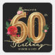 Sticker Carré Rose florale rouge or noir glamour pour 60e annive