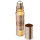 Un étiquette pour les bouteilles à rouleaux de parfum avec un design rose en or et parties scintillant.