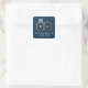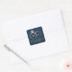 Un monogramme moderne obtient glam avec des anneaux de mariage en or rose entrelacés avec un texte blanc facile à personnaliser pour vos initiales, nom marié et date mariage sur cet autocollant en carré bleu marine classique, parfait pour les enveloppes et les faveurs de mariage.