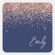 Sticker Carré Rose Gold Rose Clair Bleu Marine Paillettes Nom