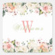 Sticker Carré Roses Florales Roses Élégant Monogramme Nom