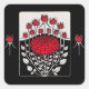 Sticker Carré ROSES ROSEBUDS Art Nouveau Floral NOIR BLANC ROUGE