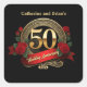 Sticker Carré Roses Rouges Dorées 50e Anniversaire de Mariage