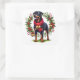 Sticker Carré Rottweiler dans une couronne de Noël avec cloches