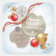 Décorez votre maison ce Noël avec notre magnifique autocollant carré de Noël. Des perles rouges et dorées, des étoiles dorées et des boules de Noël dorées et rouges sur des flocons de neige étincelants arrière - plan lui donnent un beau look festif. Parfait pour vos cadeaux de Noël et vos enveloppes