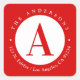 Sticker Carré Rouge | Monogramme circulaire d'adresse de retour