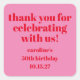 Sticker Carré moderne Gras Rose brillant 50e anniversaire Custom Merci. Tout le texte est modifiable de sorte qu'il puisse être utilisé pour n'importe quel âge.