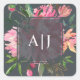 Sticker Carré Ruby Pink Peony Floral Monogramme botanique