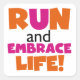 Si vous aimez courir, courir 5Ks, 10Ks, demi-marathons ou marathons, vous adorerez ce texte coloré en orange et rose chaud qui lit Run and Embrace Life! Courez et Embrace Vie T-shirts, sweat - shirts à capuche, magnets, boutons, cartes, autocollants, porte - clés, et beaucoup d'autres articles pour les coureurs qui aiment un design de course brillant et coloré!