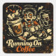 Sticker Carré Running On Coffee – Caffeinated Humor Survival