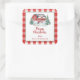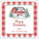 Rustic Farmhouse Tractor Carré Snow Christmas Sticker Étiquette. Ferme vacances stationnaire et emballage cadeau.