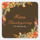 Sticker Carré Rustic Autumn Fall Leaves Thanksgiving Party