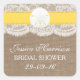 Ces stickers de douche nuptiale de plage de sable jaune en dollar seront l'accessoire parfait pour toute future mariée! Le design est composé d'un bel arrière - plan rustique effet burlap avec une coupe en dentelle vintage romantique finie avec un dollar de sable étonnant sur un ruban jaune. Ces autocollants peuvent être personnalisés pour votre occasion spéciale et rendraient l'accessoire parfait pour n'importe quel mariage de plage, douche nuptiale, fête de fiançailles, fête d'anniversaire et bien plus encore. *Veuillez noter que Zazzle ne vend que des autocollants imprimés, de sorte que ces autocollants n'ont pas de matériel de burlap, dentelle, dollar de sable ou ruban.