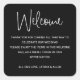 Cet autocollant d'accueil moderne et amusant, noir et blanc, placé sur votre sac de bienvenue ou votre panier dans leur logement, est une bonne façon de remercier vos invités de l'extérieur de la ville pour le voyage qu'ils ont dû faire pour se rendre à votre mariage.